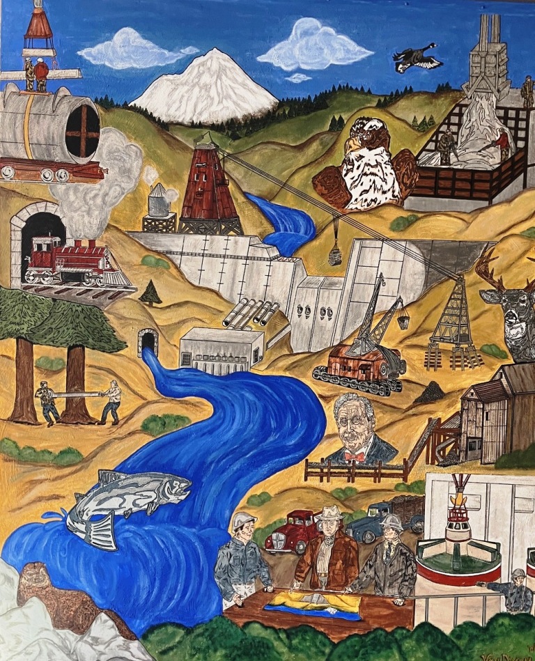 On the way back to the visitor center, we took once last look down the spillway, admired a collage of the dam's history in the visitor center, then headed for a late lunch at Panera in Redding.